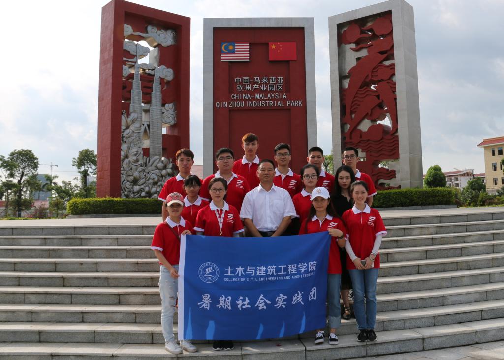 师生在中马钦州产业园海浪广场合影