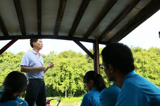 红军堂的管理人员在船上向团队成员讲述红军堂的过往