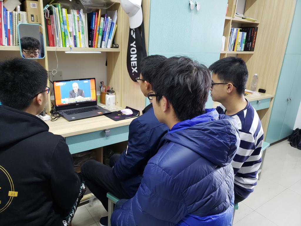 同学们在宿舍观看“两会”视频