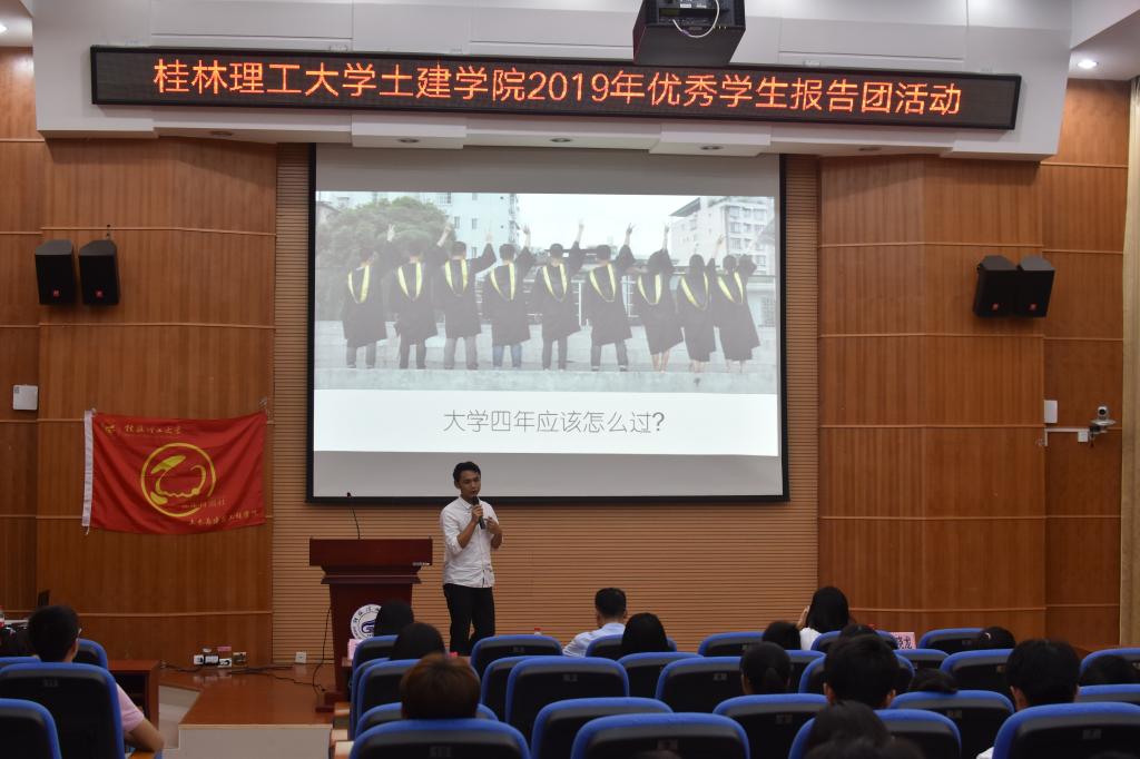 为更好发挥优秀学生的引领示范和朋辈领航教育作用,传播正能量。6月11日,学院青年自强社在雁山校区12栋萃华楼报告厅举办了以“走向自信、走向阳光、走向成功”为主题的朋辈领航教育活动,本次活动由沈晴燕和张绍明主持,2018级辅导员罗长钦,优秀学生报告团代表,青年自强社干事和2018级部分学生参与了本次活动。