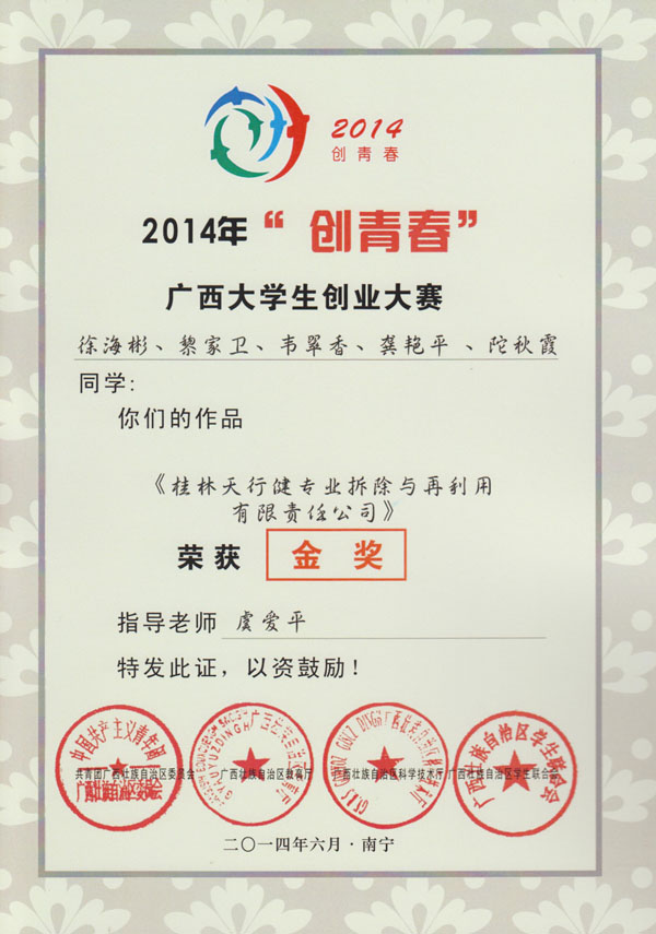 我院学生作品在2014年“创青春”广西大学生创业大赛中荣获金奖