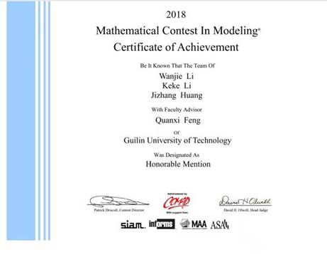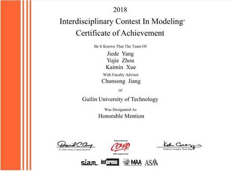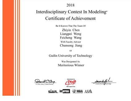 2018年美国大学生数学建模竞赛我院获奖队伍信息如下: