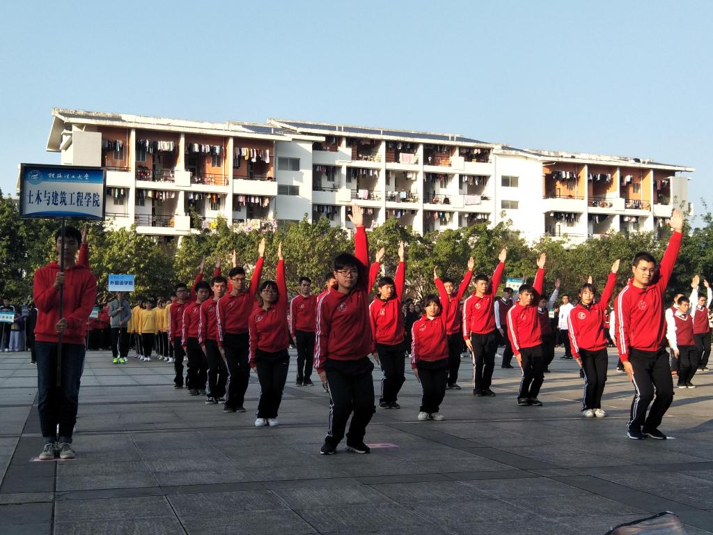 为了提高广大学生的身体素质,进一步丰富校园文化活动,学校于11月26日下午在雁山校区三号广场举行了2017年校园广播体操比赛。