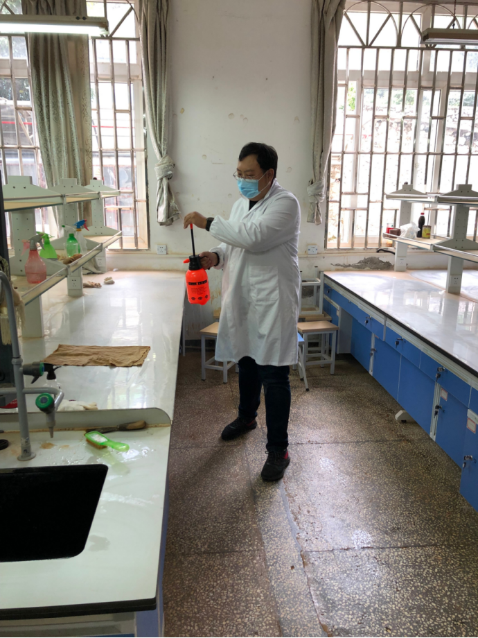 实验室老师在实验室进行防疫消杀操作(一)