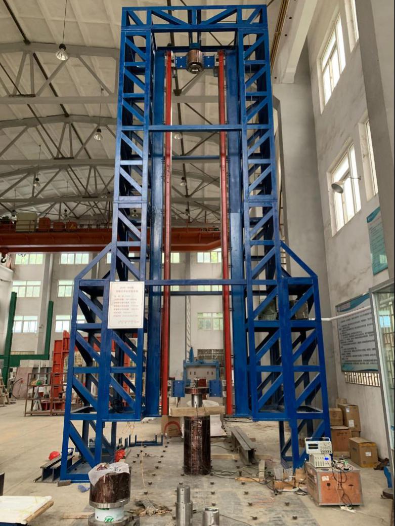 DHR-1909型落锤式冲击试验机采用数控和手控等多系统一体化的仪器,可以进行不同类型构件(梁、板等)的冲击试验。操作系统方便灵活,通过数控系统可实现不同高度、速度和冲击动能的撞击模拟。落锤升降主机架最大高度为9.6m,升降导轨间距1.04m,主锤体总质量2518kg,其中一号主锤体136.5kg,二号主锤体410kg,三号主锤体694kg,四号主锤体1278kg。升降系统最大提升高度7.2m,最大冲击速度11.8m/s,最大冲击能量122*10³J。