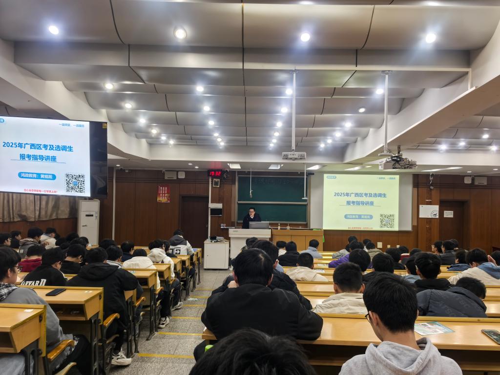 为帮助2025届毕业生科学备考广西区考及选调生考试,1月5日,学院特邀鸿政教育资深讲师宋老师,开展“逐梦公考·职引未来”专题讲座。活动吸引百余名学生参与,现场互动热烈,反响积极。
