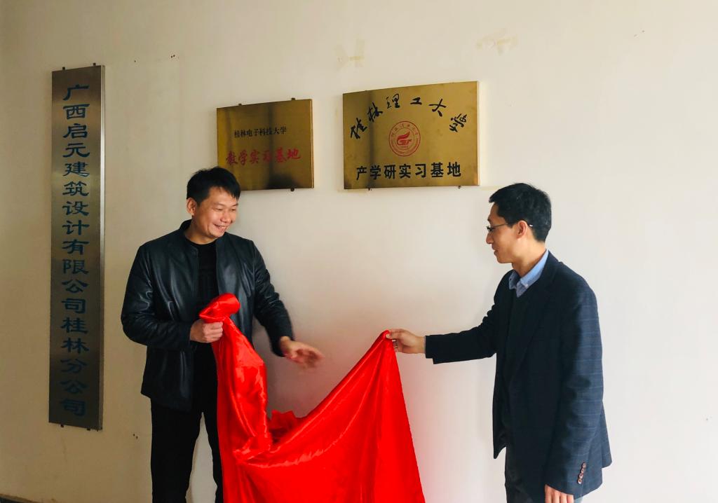 2019年3月13日,学院与广西启元建筑设计有限公司桂林分公司举行共建就业实习基地签约及揭牌仪式。广西启元建筑设计有限公司桂林分公司董事长张强,公司总经理、总建筑师周泉,总经理、总工程师黄轲、副总建筑师吴海荣以及学院副院长余文成,建筑学教研室主任李季,城乡规划学教师姚斌和就业辅导员安邦国参加了仪式。