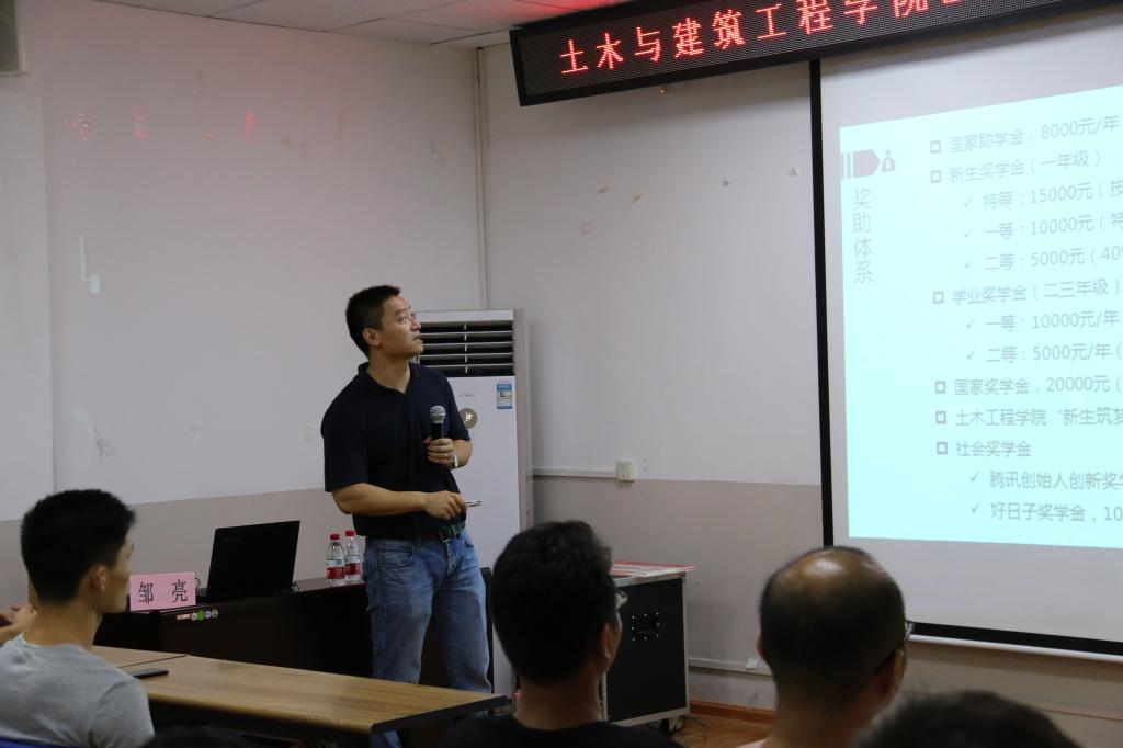邹亮副院长在宣谈会上首先介绍深圳大学的情况,具体包括深圳大学的校区分布、校内活动、师资力量、科研实训基地等。接着重点介绍了深圳大学土木工程学院的研究生专硕和学硕的相关专业情况,突出介绍了学院与国外一些大学的合作情况,让同学们看到学院专业发展的前景。同时为了解除同学们的后顾之忧,邹亮副院长还重点介绍了深圳大学的奖助学金体系。邹亮副院长在回答了同学们的一些问题后,欢迎和鼓励土建学子能够报考深圳大学土木工程学院的研究生。