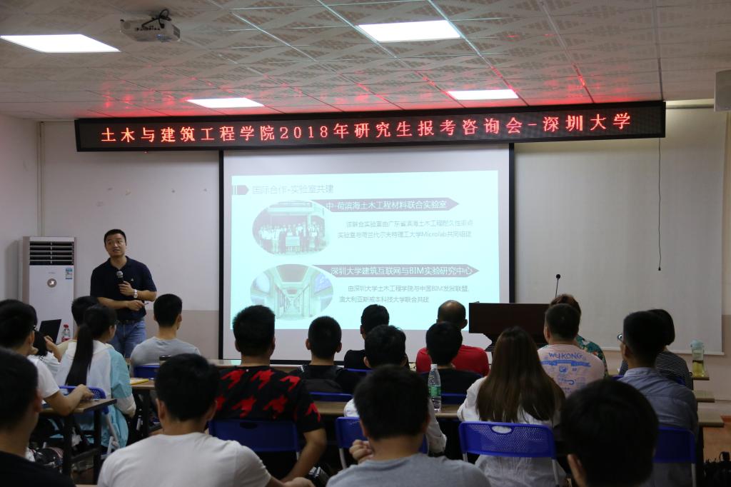 7月2日下午,土木与建筑工程学院2018年研究生报考咨询会——深圳大学宣讲会,由深圳大学土木工程学院邹亮副院长主讲,学院党委副书记王盛主持,学院80多名学生参加了宣讲会。