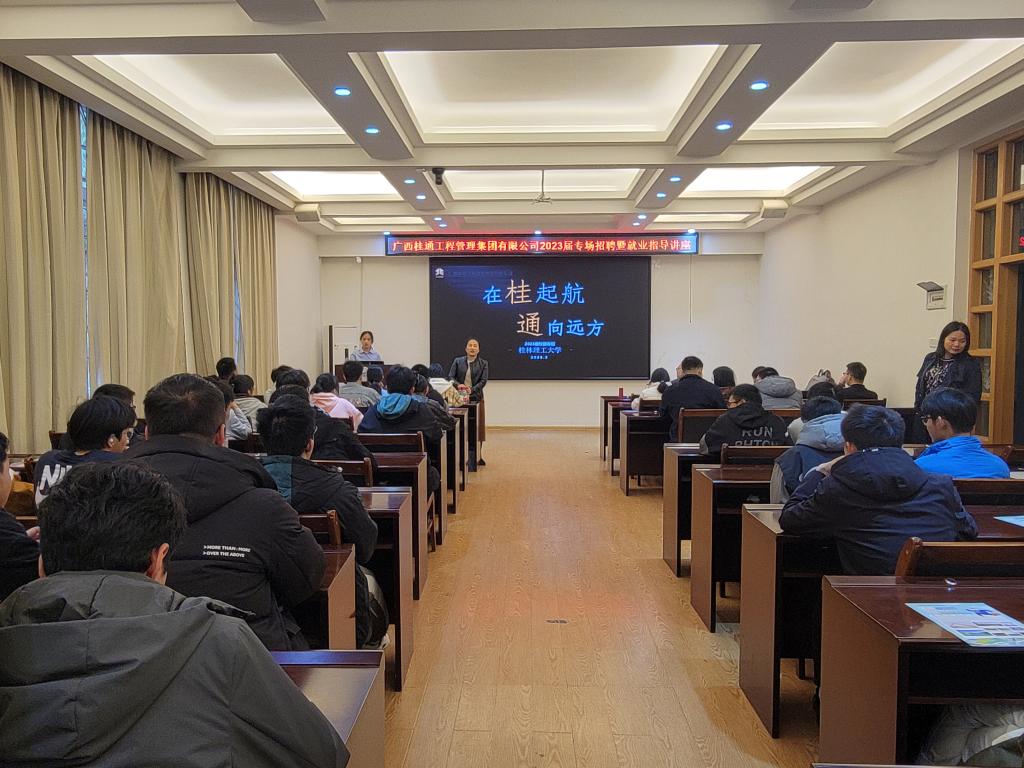 2023年3月1日下午15:30,土木与建筑工程学院开展2023届毕业生就业指导讲座。会议由学院党委副书记唐丽华老师主持,有幸邀请到学院长期合作的优秀校友企业广西桂通工程管理有限公司前来分享。