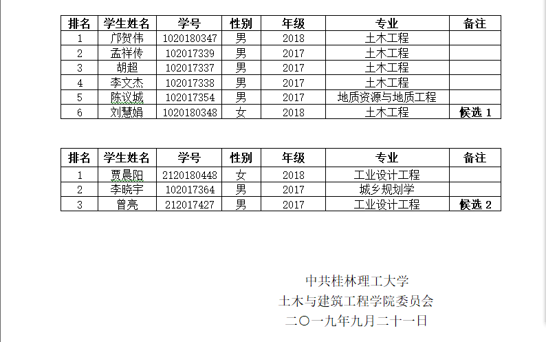 公示期为2019年9月21日至9月25日,共计5天。有异议者,请于2019年9月25日下午17:00前,书面向学院学生工作办公室(4226)反映,并署手写真实姓名,不署真实姓名的,不予受理。学生工作办公室电话:5896372。
