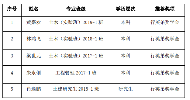 根据《桂林理工大学“行英弟奖学金”评定办法》和《关于开展桂林理工大学2020年行英弟奖学金评定工作的通知》,经学生个人申请,学院学生工作领导小组根据评审条件进行认定,现将推荐参评人员名单进行公示,结果如下: