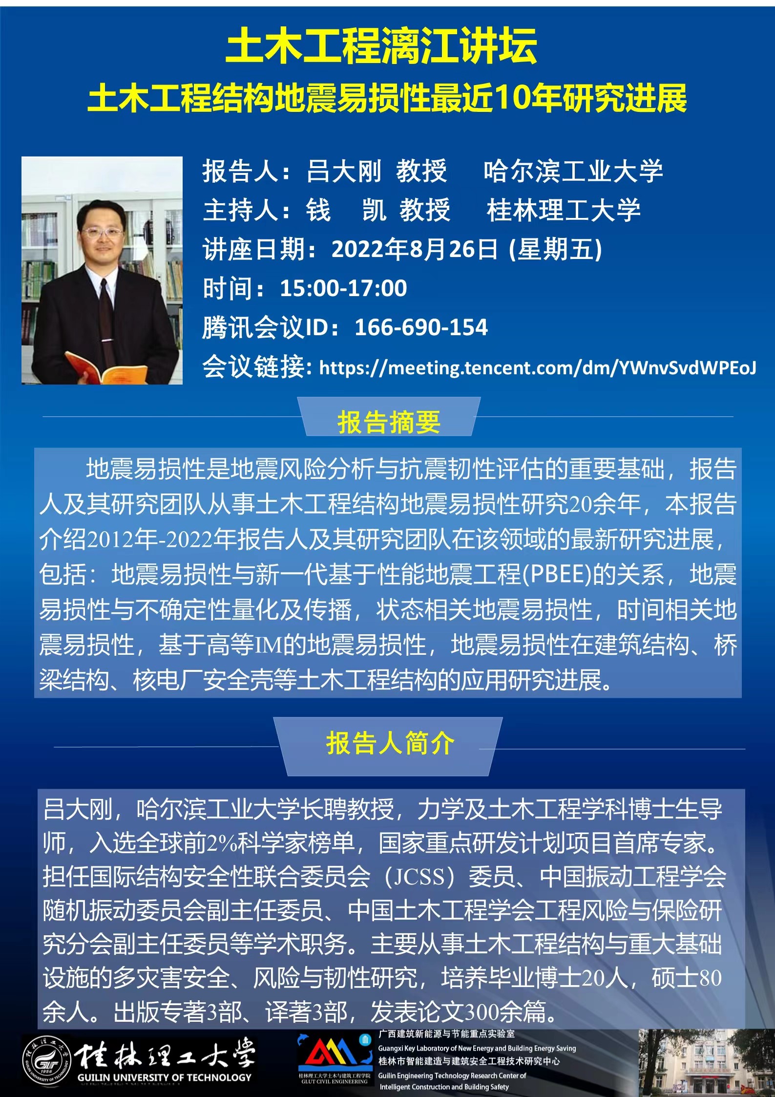 桂林理工大学漓江讲坛-哈尔滨工业大学吕大刚教授报告 - 预通知