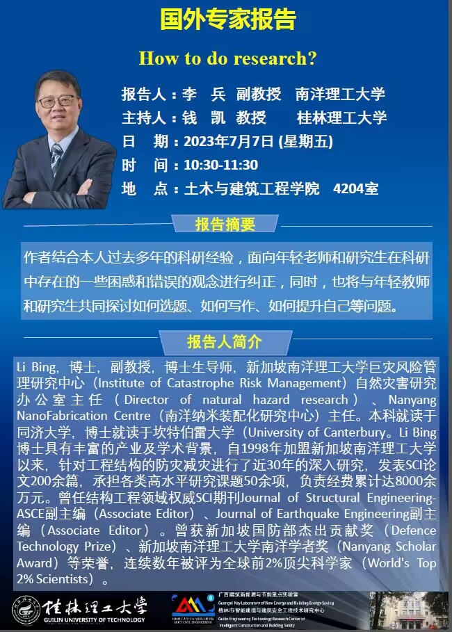【学术讲座预告】南洋理工大学李兵副教授学术报告(第二场)