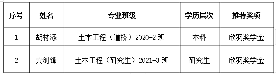 根据《桂林理工大学“欣羽奖学金”评定办法》和《关于开展桂林理工大学2023年欣羽奖学金评定工作的通知》,经学生个人申请,学院学生工作领导小组根据评审条件进行认定,现将推荐参评人员名单进行公示,结果如下:
