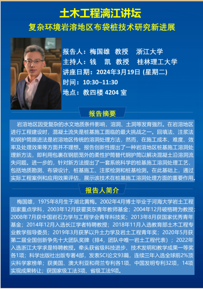 【漓江讲坛预告】浙江大学梅国雄教授学术报告