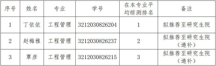 根据学校《桂林理工大学推荐优秀应届本科毕业生免试攻读硕士学位研究生工作管理办法》(桂理工研〔2023〕9 号)要求及学校2025年硕士研究生推免工作安排,按照公平、公正、公开原则,经学生个人申请,学院推荐工作小组审核评议,现将我院2025年推荐优秀应届本科毕业生免试攻读硕士学位研究生遴选结果予以公示: