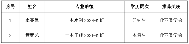 根据《桂林理工大学“欣羽奖学金”评定办法》和《关于开展桂林理工大学2024年欣羽奖学金评定工作的通知》,经学生个人申请,学院学生工作领导小组根据评审条件进行认定,现将推荐参评人员名单进行公示,结果如下: