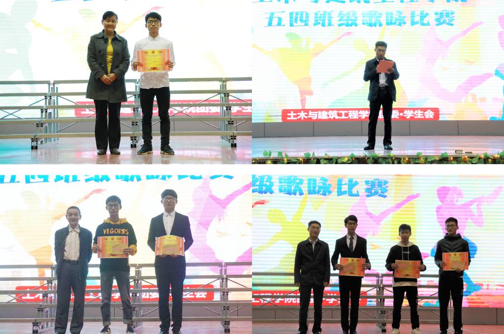 比赛在学院对广大青年学子的期望与祝福中正式拉开了序幕。屏风校区,建筑学2015-1班的同学们用铿锵有力的歌声将《中国,中国,鲜红的太阳永不落》唱出了新时代青年学子对祖国的强大自信心。雁山校区,土木类2017-6班一首《相信我们会创造奇迹》坚定了同学们心中奋力向前的信念;土木类2017-8班《我爱你中国》用嘹亮的歌声赞美了祖国的伟大,唤醒了心中深深的爱国之情;土木类2017-11班以一首《明天会更好》唱出对未来的美好的憧憬与愿望,让人沉醉在歌声中,迎来了台下阵阵掌声。经过激烈角逐,建筑学2015-2班、土木类2017-11班分别荣获学院两校区班级歌咏比赛的第一名。