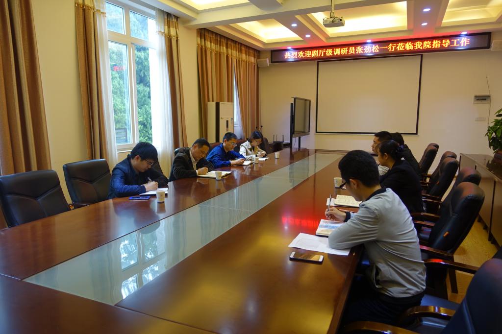 4月11日下午,学校副厅级调研员张劲松由学生工作处副处长冯广辉、校团委副书记陈小波等陪同到我院指导工作。学院党委书记熊英、副书记王盛以及屏风全体学工人员参加了座谈会。