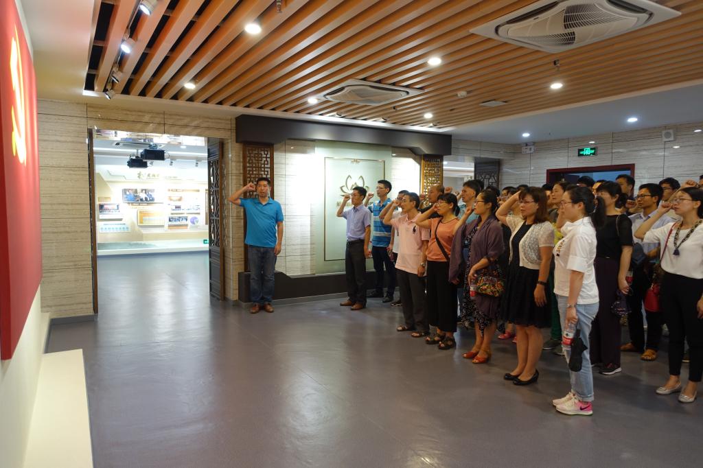 讲解结束后,在学院王盛副书记的领誓下,全体党员们举起右手,面对鲜红的党旗庄严宣誓,重温了入党誓词。参观学习结束后,党员代表们对桂林市廉政教育基地的参观学习深受教育。学生党员承诺要勤奋学习,扣好人生的第一颗扣子;教师党员们表示努力工作,做到“四好”老师,做明白人,干干净事。