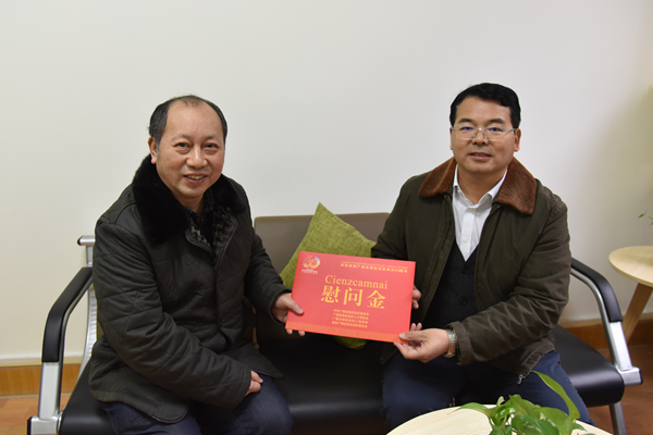 12月13日,李国忠书记来到学院,慰问了省级先进工作者陈平教授,详细询问了陈平教授的工作、学习和生活情况,为他送上自治区60周年大庆的慰问品,表达了党中央、自治区党委政府和学校对先进工作者的关心和感谢。李国忠书记表示学校将一如既往地全力支持陈平教授的工作,并鼓励他继续发挥先锋模范作用,锐意进取、开拓创新,在绿色建材科研领域和人才培养工作方面作出新的贡献,为推进学校的教育事业和自治区的富民兴桂事业而努力奋斗。