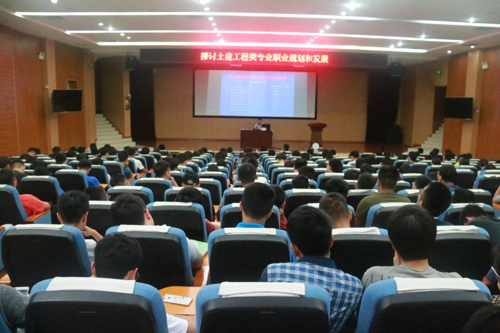 翁磊工程师围绕土木工程专业职业规划和发展的主题,从土建行业简介、高校土建专业学生需做好三大准备、提前筹备职业生涯规划、生存技能和梦想兼顾等方面给同学们阐述了职业规划的重要性和必要性。同时翁磊工程师根据自身工作实践,结合生动鲜活的工作案例和数据分析,深入了土木工程专业的发展前景;结合自身的学习经历,和同学们探讨了大学生活。他告知大家,作为学生应努力吃透专业知识,不留疑问,要多和老师探讨有关专业的问题,确保自己的大学生活不留遗憾。最后翁磊工程师告诫同学们大学是奋斗的黄金时期,只有在大学阶段不断提升自己,做一个有理想、爱奋斗的人才能在今后竞争激烈的社会中闯出属于自己的一片天地。