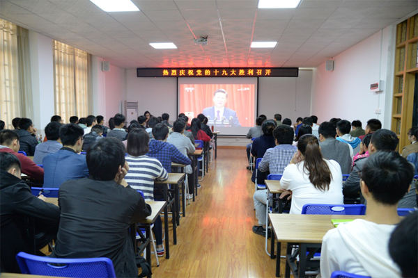 与会师生满怀期待,跟随会议议程,认真听取并记录习近平总书记的报告,聆听了习近平同志代表第十八届中央委员会向党的十九大作的报告,了解了我国过去5年的工作、新时代中国共产党的历史使命,以及习近平新时代中国特色社会主义思想等主要内容。会场气氛热烈,大家激情澎湃,为祖国繁荣昌盛而自豪,为全国各族人民群众在中国共产党领导下幸福生活而骄傲。