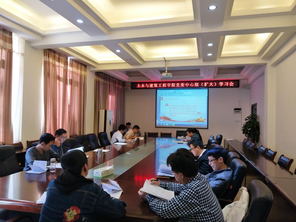 2017年10月31日下午,土木与建筑工程学院党委中心组(扩大)集中理论学习会在4222会议室举行。学院党委委员、教师党支部支委参加了本次学习会,学习会由学院党委书记熊英主持。