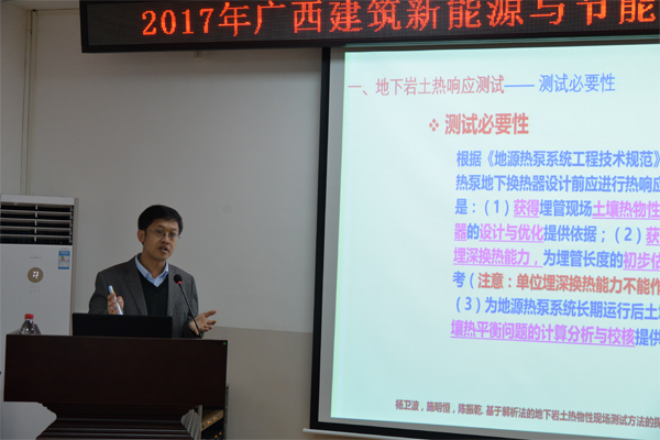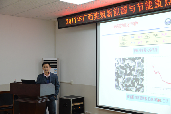 本次会议以建筑新能源与节能和岩土工程为主题。武汉大学刘数华教授在主题为“废弃玻璃粉在水泥混凝土中的应用机理”的报告中,揭示了废弃玻璃粉粒径对混凝土特性的影响以及废弃玻璃应用的ASR风险;扬州大学杨卫波教授以“土壤耦合热泵应用中关键问题的探讨”为主题作了汇报,介绍了地源热泵的应用,并结合扬州大学的地源热泵系统,讲解了系统的工作原理。我院刘丽荣教授以漓江风景名胜区为依托,对传统村落的现状和“文化+风光+低碳”整体优化的理念进行了详细介绍。随后我校曾召田、颜荣涛、刘荣进、兰景岩、胡尚瑜等教师针对自己的研究领域,介绍了岩土、能源、建筑等领域的相关问题。最后,科技处副处长王磊教授代表科技处进行了总结讲话。