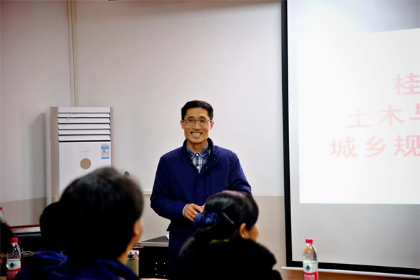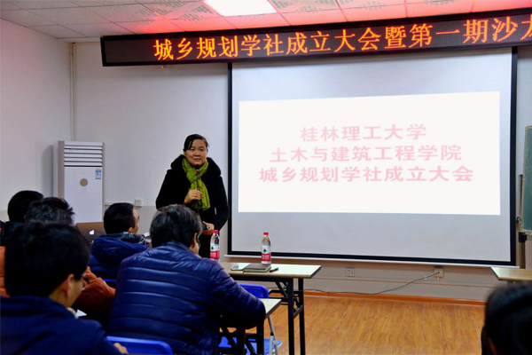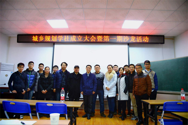 12月15日晚,我院城乡规划学社成立大会暨第一期主题沙龙活动在教四楼4203成功举行。大会由城乡规划教研室主任孙昌盛主持,学院党委书记熊英,党委副书记王盛,副院长余文成、赵军,团委书记唐丽华以及城乡规划教研室老师应邀出席。城乡规划、建筑学及土木工程专业约160名学生参加了本次活动。