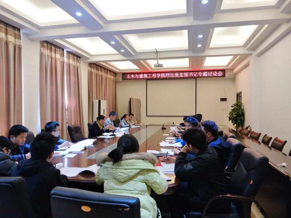 根据学校党支部书记培训班安排,12月26日土木与建筑工程学院党委在4222会议室召开师生党支部书记专题讨论会,全体党支部书记参加了讨论会,讨论会由学院党委书记熊英主持。