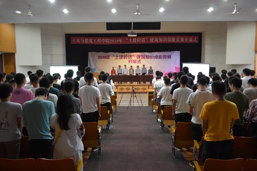 开幕式伊始观看了往年“土建砼话”活动的精彩瞬间的回顾视频,接着全体起立奏唱桂林理工大学校歌。学院副院长刘之葵老师从竞赛的活动背景、各子项目的参赛人数、参赛规模等方面介绍了“土建砼话”建筑知识技能竞赛的基本情况。随后,学院团委书记姚慧老师宣读2019年“土建砼话”建筑知识技能竞赛各子项目的承办单位名单,希望各项目的承办单位能认真组织比赛,确保活动顺利进行。
