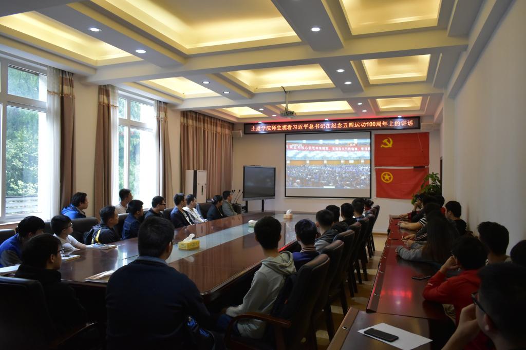 4月30日上午10:30分,土木与建筑工程学院组织师生观看习近平总书记在纪念五四运动100周年上的重要讲话。学院党委书记熊英、党委副书记王盛、团委书记姚慧、全体辅导员以及学生骨干、优秀团员代表现场观看了习近平总书记纪念五四运动100周年重要讲话直播。