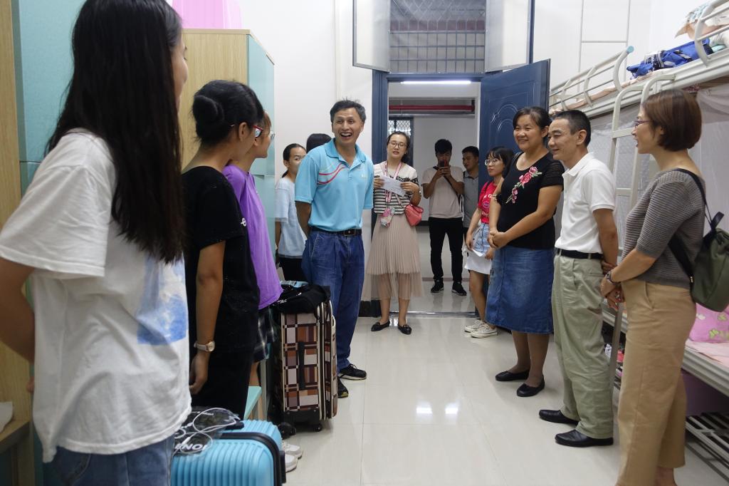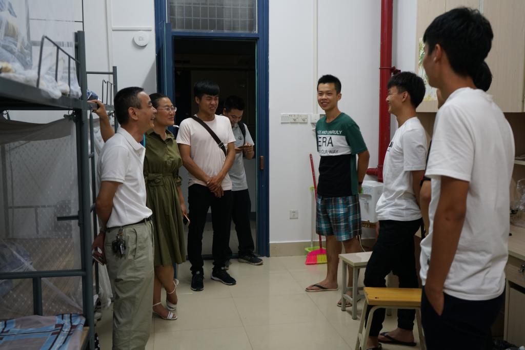 9月9日晚,我院党委书记熊英老师,副院长刘之葵、副院长赵军带领全体2018级辅导员、班主任、班级助理走访2018级新生宿舍。