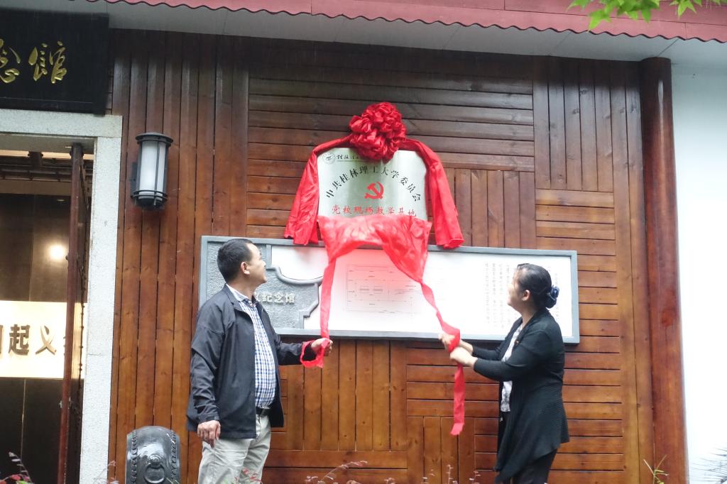 2018年10月9日下午,由学校党委党校组建、土木与建筑工程学院党委分党校承建的“桂北武装起义纪念地党校现场教学基地”在灵川县灵田镇灵田起义纪念馆前正式揭牌。灵川县灵田镇党委书记曾兵、副镇长秦戊孙,土木与建筑工程学院党委书记兼分党校校长熊英,副书记兼分党校副校长王盛,以及学院师生党员和入党积极分子代表冒雨参加了本次揭牌仪式。