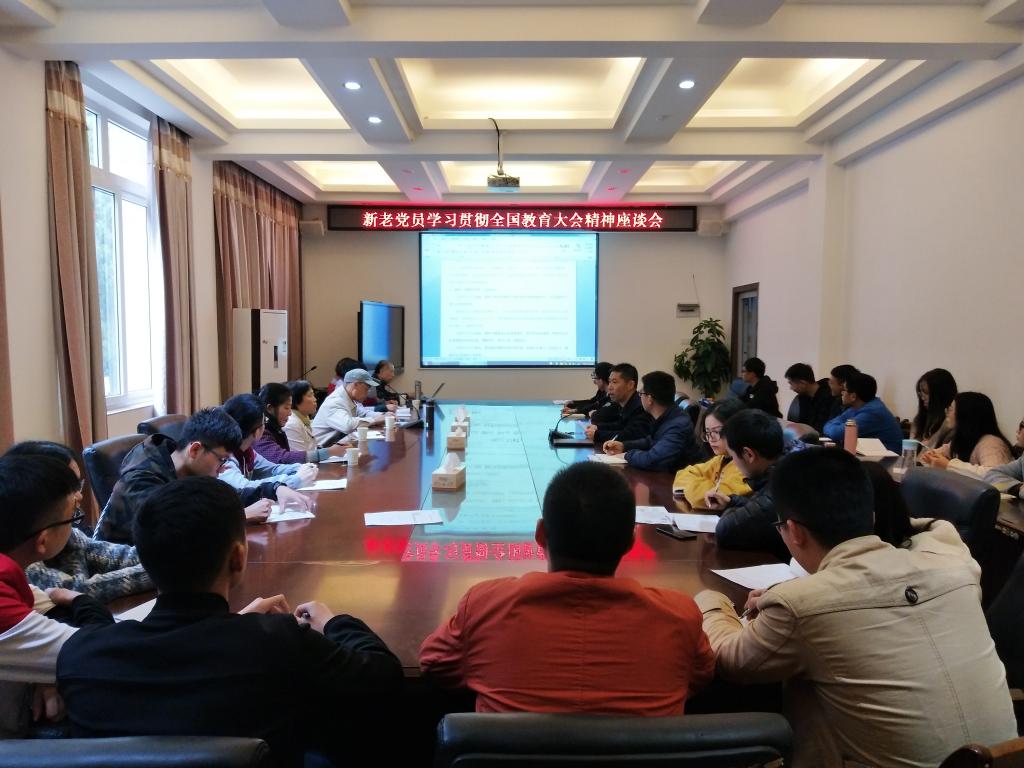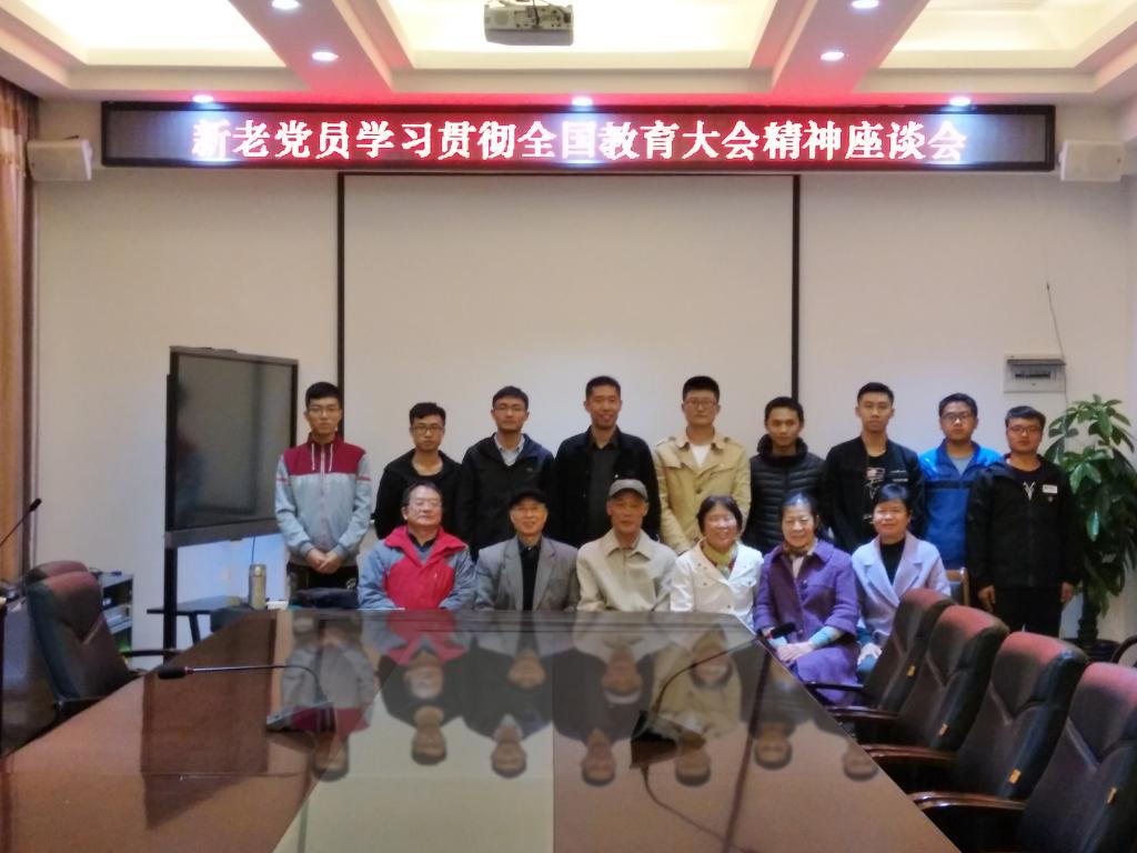 为深刻领会习近平新时代中国特色社会主义思想,落实“强基固本”工程,推进学院学生党支部与离退处党支部结对共建工作开展。2018年11月13日,我院学生党支部委员与离退处五、六党支部委员在屏风校区4222会议室就全国教育大会精神进行了座谈交流,本次座谈会由学院党委副书记王盛主持。