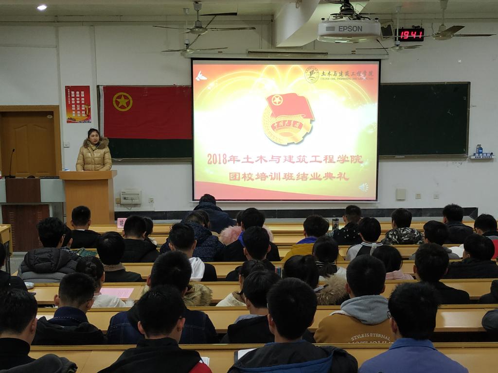 12月14日晚19:00,土木与建筑工程学院在屏风校区9301教室举行了2018年秋季学期团校培训班结业典礼。我院团委书记姚慧老师,17级辅导员马文硕老师以及2018年秋季学期团校培训班全体学员出席了本次结业典礼。