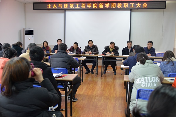 2月22日下午,新学期伊始,我院在屏风教四楼4203会议室召开2019年春季新学期全院教职工大会,部署新学期工作。学院党政领导班子、全体教职工参加了本次大会,会议由学院党委书记熊英主持。