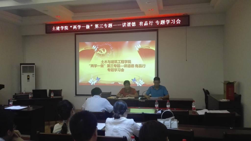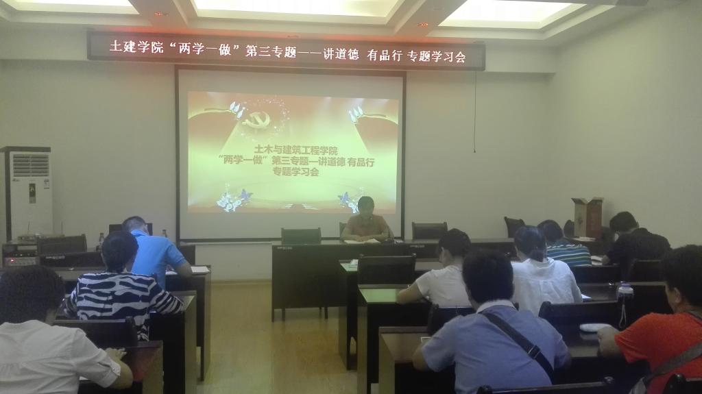 2016年9月20日下午15:30,土建学院党委在4204会议室召开了“讲道德 有品行”专题学习会。会议由学院党委书记熊英同志主持,学院党委委员,全体教工党员和学生党支部支委参加了此次会议。