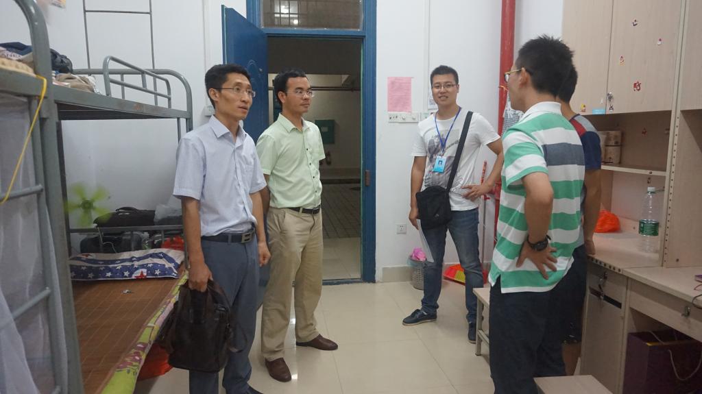 与此同时,党委副书记王盛和副院长王磊老师等一行人也分别走访了24栋新生宿舍。在学生宿舍,他们细心地了解同学们的衣食住行情况,对同学们选择桂工表示热烈欢迎。