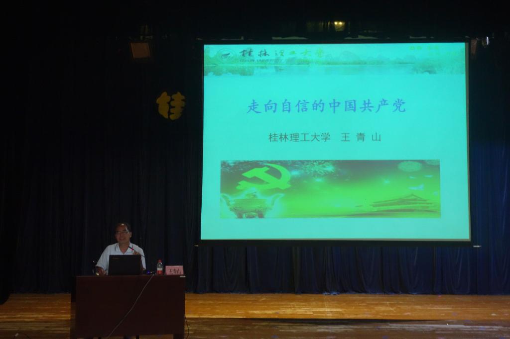 王青山教授以《走向自信的中国共产党》为题,生动而深刻地讲述了中国共产党成立95年以来取得的辉煌成就,分析了中国共产党为什么虽历经风雨,却能够始终充满自信,阐释了实现中国梦与坚持中国特色社会主义道路自信、理论自信、制度自信的内在联系。他用大量鲜活的实例告诉我们,中国共产党领导是历史的选择、人民的选择和时代的抉择,“三个自信”是实现伟大中国梦的底气所在,中国特色社会主义事业发展需要我们坚定不移地走中国道路,弘扬中国精神,凝聚中国力量。