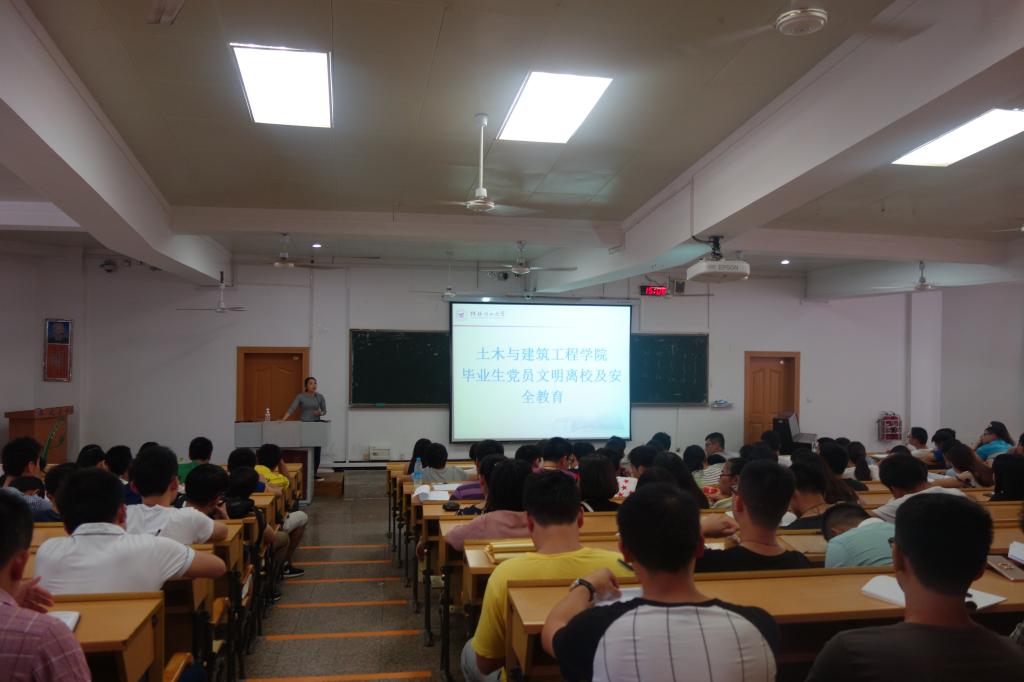 为认真做好2016年毕业生党员“两学一做”学习教育,保证毕业生党员在离校前普遍接受一次严格的党性教育,更好的总结在大学期间党员的成长历程,土建学院党委于5月31日下午在9101教室召开了毕业生党员离校教育专题会议,土建学院党委委员、团委书记唐丽华老师、辅导员马文硕老师及学院全体毕业生党员出席会议。