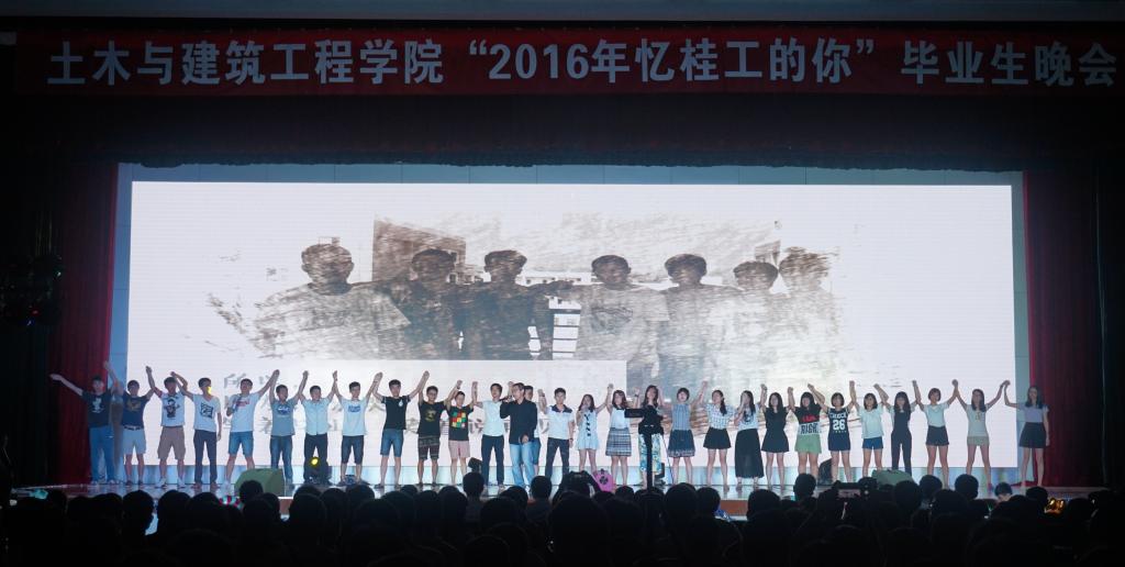 笑语欢声,吹响毕业号角;载歌载舞,镌刻离别思绪。6月7日晚,由学院主办的“忆桂工的你”2016届毕业生晚会在屏风体育馆三楼隆重举行。学校副校长陈学军出席毕业生晚会。校党委宣传部副部长饶建辉、学院领导班子和师生近1500余人了参加晚会。