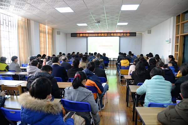 2016年12月27日下午,我院在屏风校区教四楼4203会议室召开2016年度教职工考核评测工作会议。会议由熊英书记主持,全院教职工参加了会议。