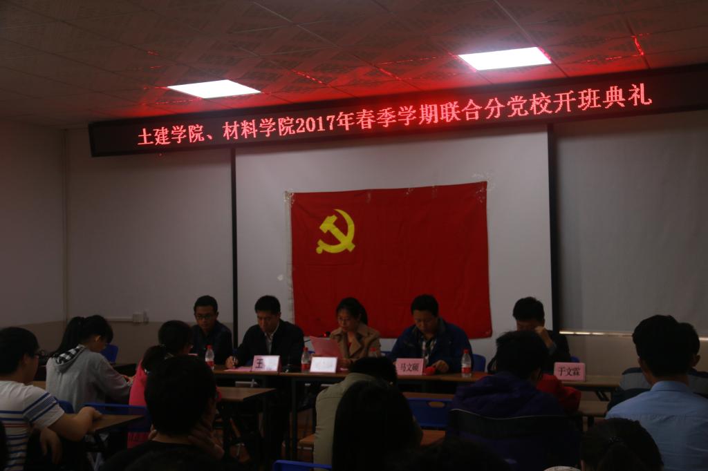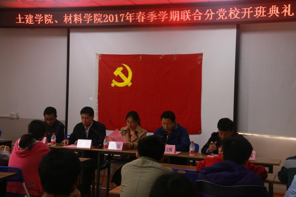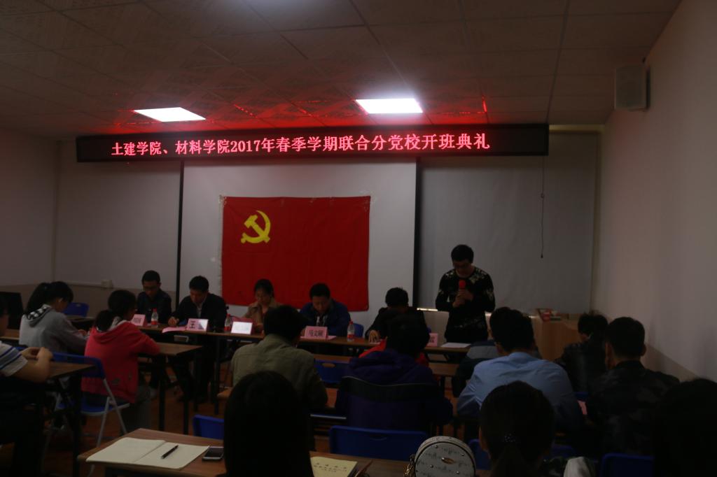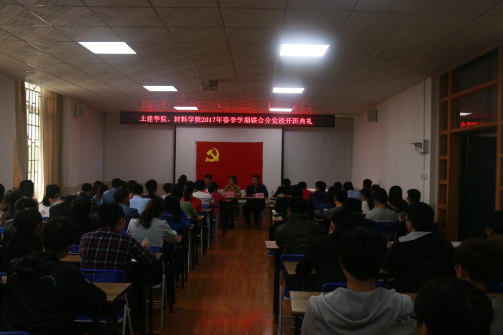 为加强入党积极分子的培养教育,帮助入党积极分子提高政治觉悟,加强党性修养,进一步端正入党动机。4月7日中午,土建学院、材料学院联合分党校2017年春季学期入党积极分子培训班开班典礼在4203会议室召开。参加本次开班典礼的有土建学院党委副书记、分党校副校长王盛,材料学院党委副书记、分党校副校长刘志丽、土建学院辅导员安邦国、材料学院辅导员于文霖出席参加了此次典礼,典礼由土建学院辅导员、分党校教务员、联合分党校班主任马文硕主持,培训班全体学员参加了此次典礼。