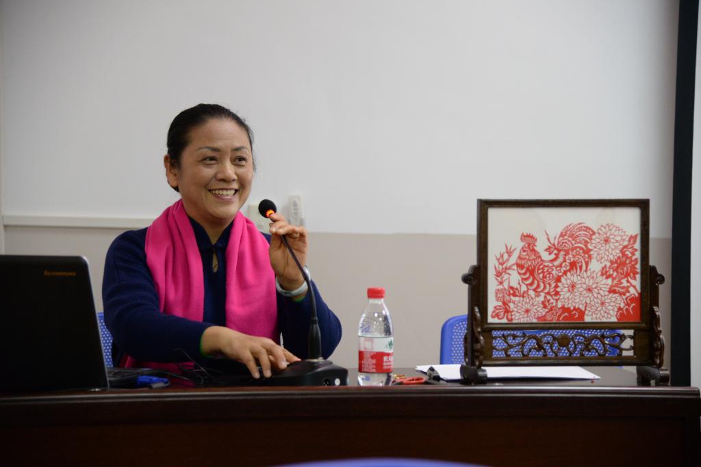 中国国际剪纸协会理事、广西高级工艺美术师、桂林理工大学剪纸协会执导老师闵江红老师为女同胞们带来了专题讲座:体验剪纸“会飞的花”——传承剪纸文化 · 体验指尖之美。通过培训,老师们了解了剪纸语言:纹,剪纸艺术的来源,剪纸与现代生活及现代艺术的融合,体验了指尖之美。