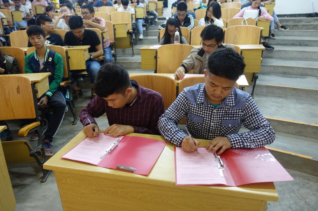 随后,陈宣东老师宣读了2016年党支部与新生班级结对共建活动正式启动的通知,党支部代表余雷同学代表党支部郑重承诺,积极引导16级新生入党,接受党组织培养。2016级新生班级代表覃茂妍同学发言,表示会积极配合党支部开展各项活动,以实际行动加入党组织。