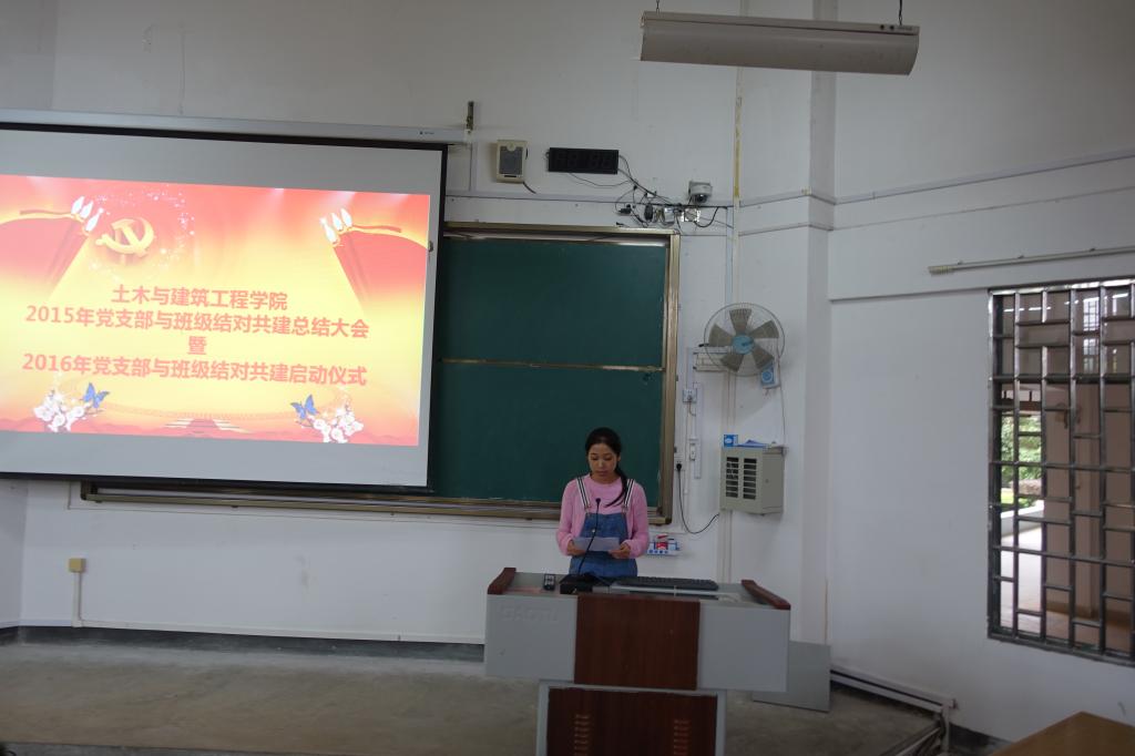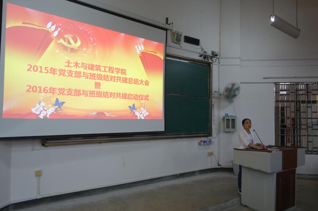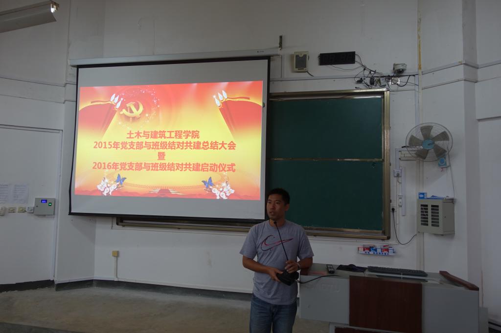 2016年10月18日下午,土建学院党委在雁山05101教室召开2015年党支部与新生班级结对共建总结大会暨2016年党支部与新生班级结对共建启动仪式,土建学院党委副书记王盛老师,团委书记唐丽华老师,陈宣东老师,陈其龙老师,各党支部代表和新生各班级班委参加了此次大会,会议由团委书记唐丽华老师主持。