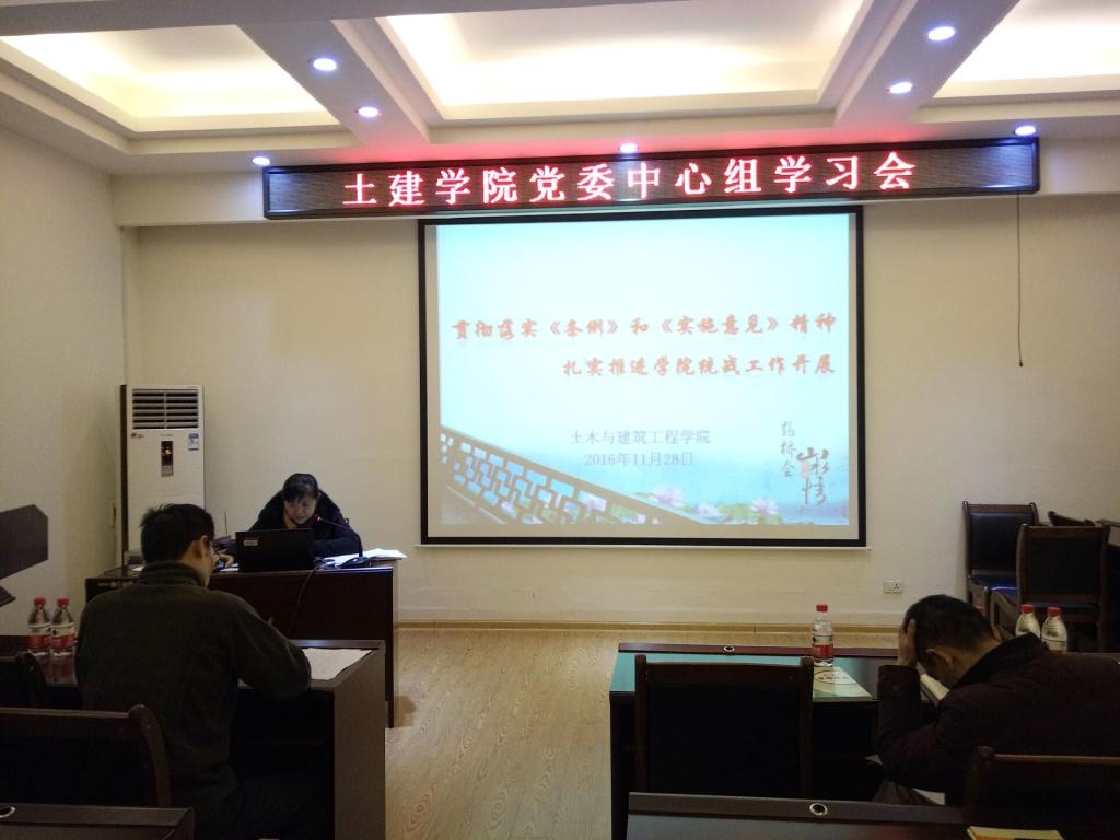 为切实落实好学校11月24日学习《中国共产党统一战线工作条例》暨统战工作推进会精神,做好我院统一战线工作,11月28日下午,学院在4204会议室召开党委中心组专题学习会。会议由学院党委书记熊英主持,学院党委成员、科级以上干部、教工支部支委参加了会议。
